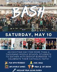 Middle School BASH: Apr 25 (Sat) To register: https://docs.google.com/forms/d/e/1FAIpQLSfkYexrm3jZWlo1-UgV2TQr_y3oU5d9r5HmgKkX6xPmURjV2g/viewform Additional Info: https://www.arlingtondiocese.org/youth-ministry/bash POC: Benjamin Paczak (Cathedral's Faith Formation Director, [email protected], 703-525-1300 x26) Print